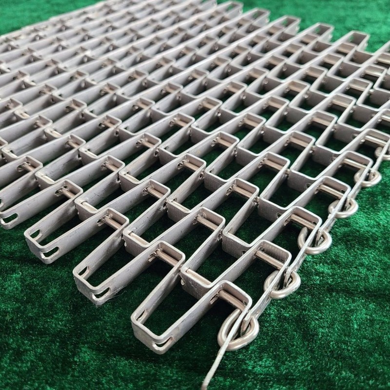 Características: la correa de la red está compuesta de chapa metálica plana y alambre metálico redondo, con peso ligero, gran espacio, superficie plana de malla, funcionamiento estable y sin desviación.