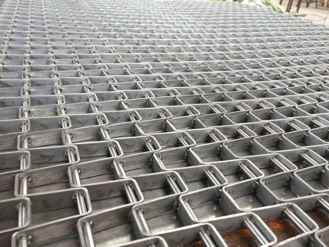 Características: la correa de la red está compuesta de chapa metálica plana y alambre metálico redondo, con peso ligero, gran espacio, superficie plana de malla, funcionamiento estable y sin desviación.